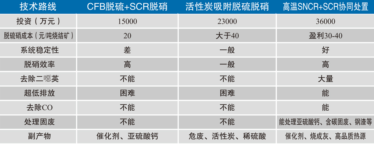4、該技術(shù)脫硫脫硝部分(高溫SNCR+SCR協(xié)同處置)與其他技術(shù)路線(xiàn)對(duì)比(以360平燒結(jié)機(jī)為例)